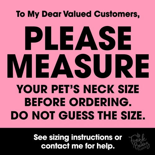 - MEASURE your pets neck with a tailor tape and add an inch for comfort as the necklace should not be too tight.