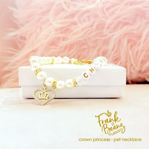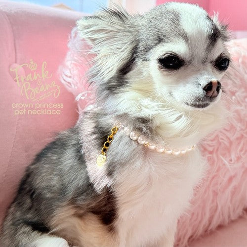 Pamper your pet with our elegant and beautiful Crown Princess Pet necklaces. Design with super lightweight (rather than glass pearls that are too heavy for first timers) pearls so it sits comfortable on your pets neck.